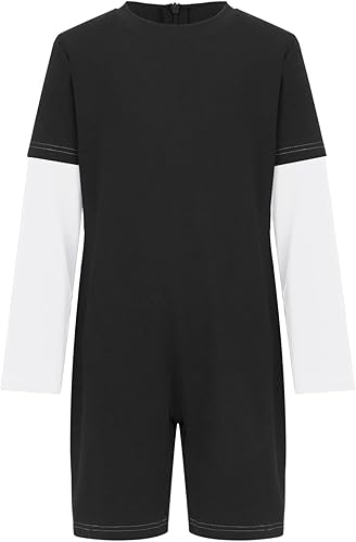 TiaoBug Special Needs Adaptive Clothing for Kids Easy Dressing Anti-Strip Romper Girls Boys Long Sleeve Jumpsuit Black White 8 Years
