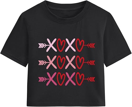 Girls Valentine's Day Crop Top: Soft fabric and comfortable to wear. This girls valentines day tshirt is designed with round neckline and short sleeves, loose fit with tie-dye color and heart pattern design, extra sparkling and eye-catching to wear.