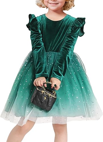 Cute Design: Toddler long sleeve ruffle dress, stars tulle design, showing the elegant gorgeous of girls. Exquisite pearl round neck, just right for playing throughout the day.