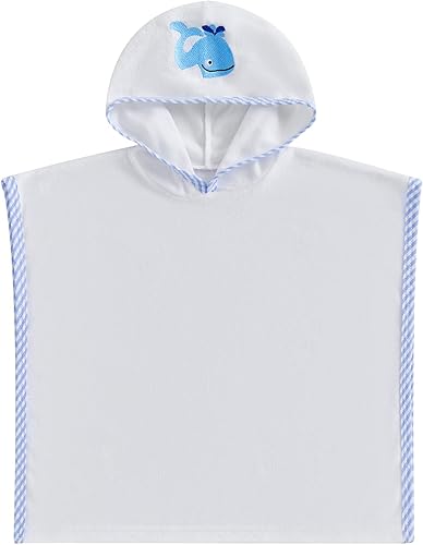 Package Includes: 1 * toddler poncho towel with hood, beach towel cover up kids, toddler hooded beach towel poncho, toddler pool towels with hood, hooded poncho towels for toddlers. Features a cute whale design with contrast color trims, adding playful and ocean-inspired charm that toddlers and parents both love. Makes bath and swim time extra fun