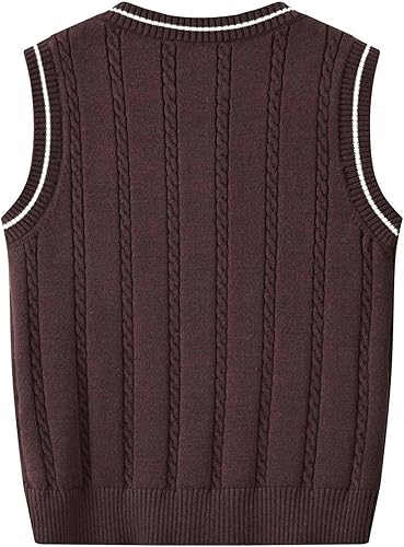 Toddler Boys V Neck Knit Sweater Vest Girls Sleeveless Pullover Cable School Uniform Athletic Shirts Solid Jackets Vest(Coffee,5-6 Years)