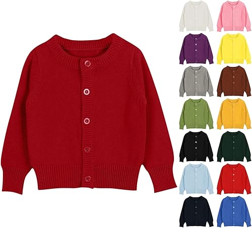 • Featuring a crewneck with delicate dot embroidery, this button down cardigan sweater boasts a relaxed fit for all-day wear. The rolled cuffs on knit cardigan add a stylish detail while providing a secure fit. Perfect for baby boys and girls, this long sleeve sweater is suitable for both spring and fall seasons. This cardigan is crafted from a soft knit material, ensuring it feels gentle against the skin. It’s a wonderful layer for completing various casual and school uniform looks.