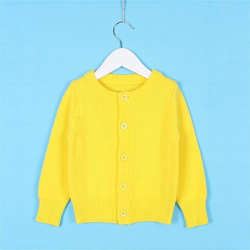 Toddler Cardigan for Boys Girls Ribbed Cuff Crewneck Button Sweater Jacket School Uniform Style Cute Clothes(Yellow,5-6 Years)