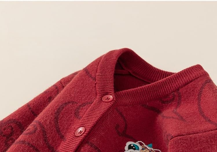 • Design:Children's V-neck cardigan sweater, rich in Chinese lion dance culture