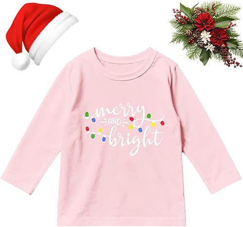 Themed Patterns:Featuring “Merry and Bright” lettering and vibrant Christmas lights patterns, these toddler Christmas long sleeve shirts for girls and boys capture the joyful mood of the season. Ideal for Christmas photos and family gatherings