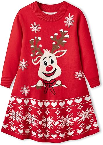 Festive Design: Adorable reindeer and snowflake knitted pattern with a flared silhouette, creating a cute and festive look perfect for the holiday season. Your little baby girl will love the charming details,wearing this cute dress adds some festive atmosphere to Christmas