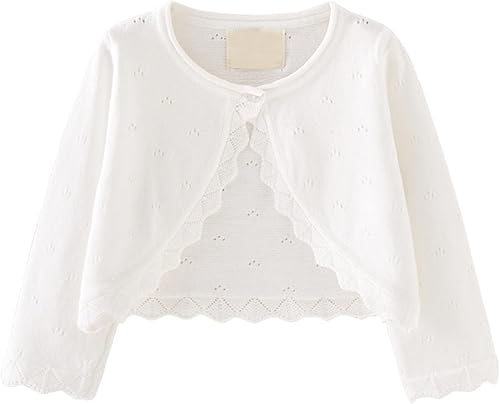 Toddler Cropped Cardigan Plain Lace Hollow Thick Open Front Sweater Long Sleeve Lightweight Kids Girls Coats Clothes(White,4-6 Years)