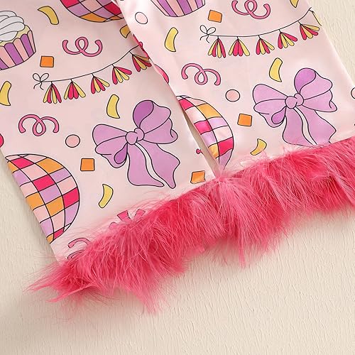 DESIGN: Two piece toddler pajamas, long sleeve button down shirts and pajama bottoms pants, cute gift bow birthday cake print birthday pjs outfit, toddler girl jammies, little girl birthday pajama set, toddler button down pajamas, toddler 2 piece pajamas girls