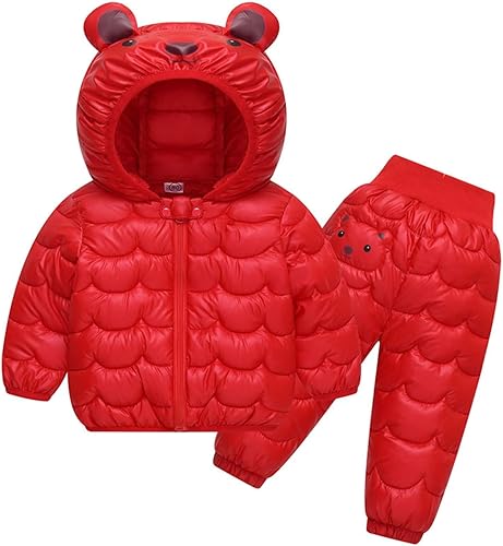 Toddler Girl Boys Girls Winter Puffer Pants and Puffer Jackets Set Kids Lightweight Cute Bears Down Snowsuit Outerwear(Red,4-5 Years)