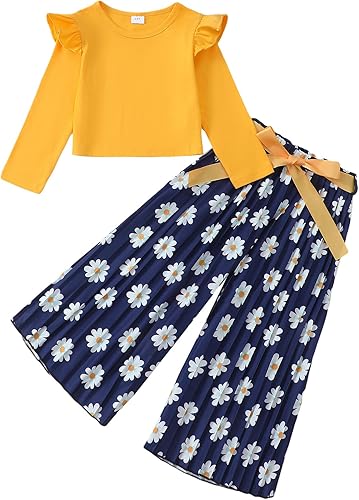 Two-Pieces Girls Outfit Set: The package include a ruffle long sleeve shirt, and a pretty pant. Mechine washable.