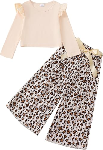 Fashion Girls Clothing Sets: Adorable 17-piece outfit featuring ruffle-detailed long sleeve tops paired with floral/leopard pleated pants for a fashion look. The matching cloth belt adds a touch of cuteness when you tuck your blouse into the waistband. Cute girls outfit for shool, daily wear.