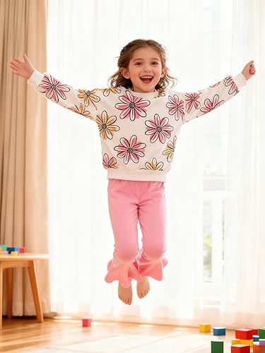 Unique Design: Top full print with side printed pants, let your child walk into the world of flower fairies in this girls fall outfit, take your child around the wonderful journey