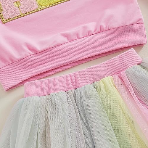 Feature: easter clothes for toddler girl is long sleeves,crew neck,letter embroidery,ribbed hem,with contrast color tulle skirt,pretty and fashionable,can make your baby more cute and get more compliments