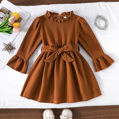 Design: toddler girl fall clothes, ruffle neck,elastic waist with a belt,ruffle long sleeve,this fall dress will make your girl so cute