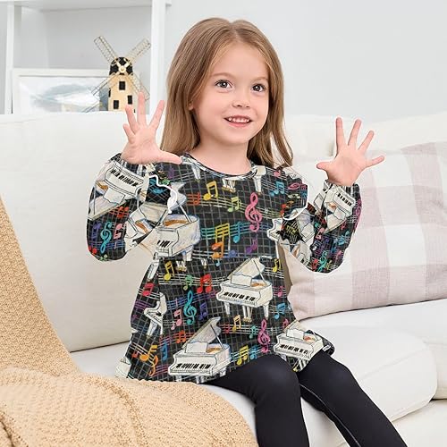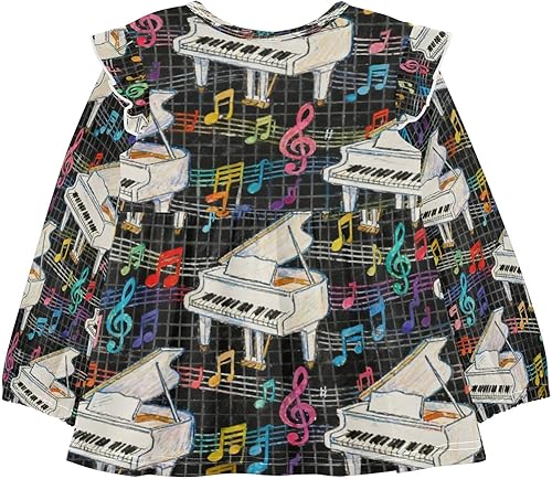 Toddler Girl Long Sleeve Shirt Ruffle Kids Blouse Tops Tee Shirt 18M-5T(Pianos Music Notes Colorful,2T)