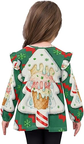 Toddler Girl Long Sleeve Shirt Ruffle Kids Blouse Tops Tee Shirt 18M-5T(Christmas Tree Ice Cream Cone,3T)