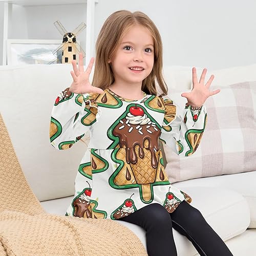 Toddler Girl Long Sleeve Shirt Ruffle Kids Blouse Tops Tee Shirt 18M-5T(Christmas Tree Ice Cream Cute,18 Months)