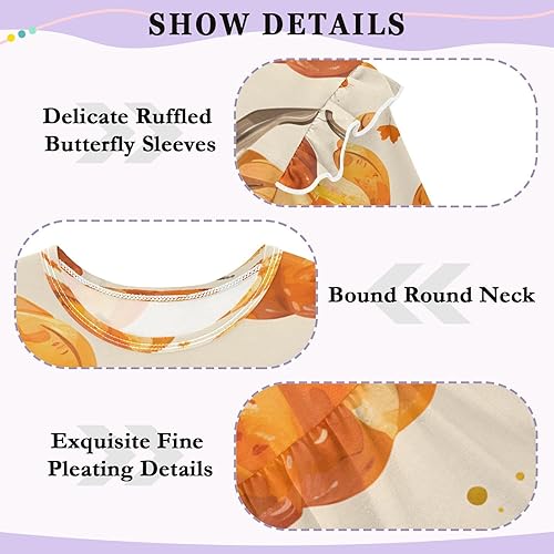Toddler Girl Long Sleeve Shirt Ruffle Kids Blouse Tops Tee Shirt 18M-5T(Pumpkin Autumn Leaves,18 Months)