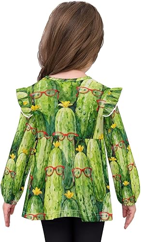 Toddler Girl Long Sleeve Shirt Ruffle Kids Blouse Tops Tee Shirt 18M-5T(Cucumbers Glasses,2T)