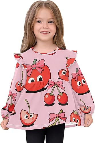 Toddler Girl Long Sleeve Shirt Ruffle Kids Blouse Tops Tee Shirt 18M-5T(Cute Cherry Tomatoes,18 Months)