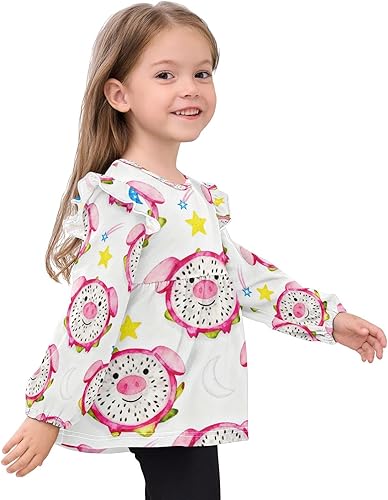 Toddler Girl Long Sleeve Shirt Ruffle Kids Blouse Tops Tee Shirt 18M-5T(Pig Face Watermelon Stars,4T)