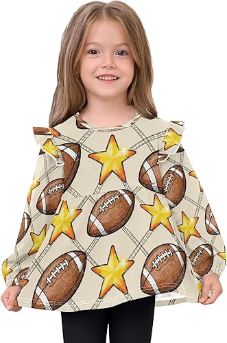 Toddler Girl Long Sleeve Shirt Ruffle Kids Blouse Tops Tee Shirt 18M-5T(Football Stars Plaid,2T)