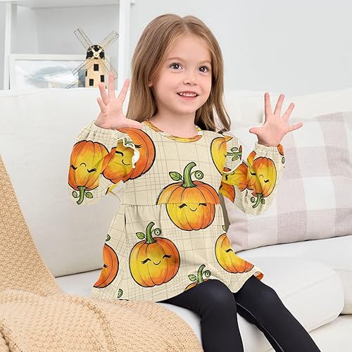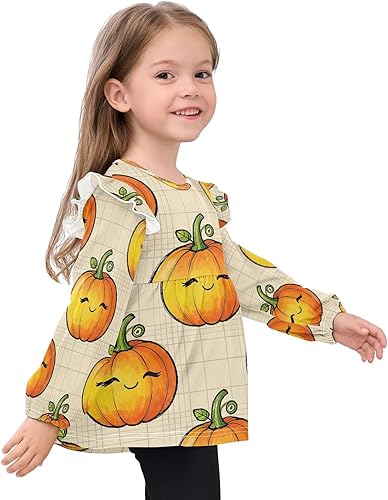 Toddler Girl Long Sleeve Shirt Ruffle Kids Blouse Tops Tee Shirt 18M-5T(Cute Pumpkin Faces,2T)