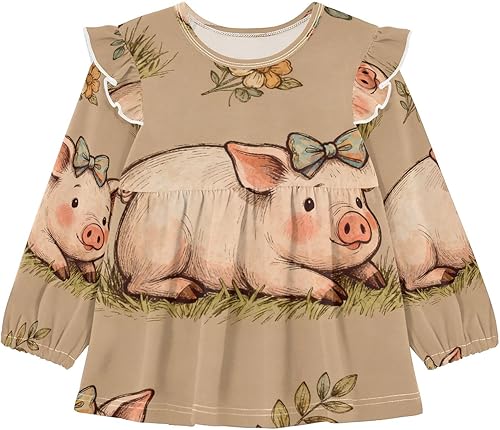 Toddler Girl Long Sleeve Shirt Ruffle Kids Blouse Tops Tee Shirt 18M-5T(Cute Pig Bow Flowers,2T)