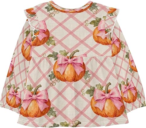 Toddler Girl Long Sleeve Shirt Ruffle Kids Blouse Tops Tee Shirt 18M-5T(Pumpkin Bow Checkered,4T)