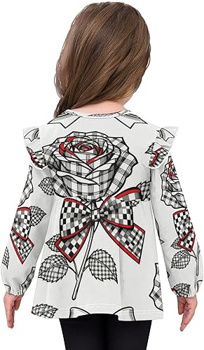 Toddler Girl Long Sleeve Shirt Ruffle Kids Blouse Tops Tee Shirt 18M-5T(Checkered Rose Bow,2T)