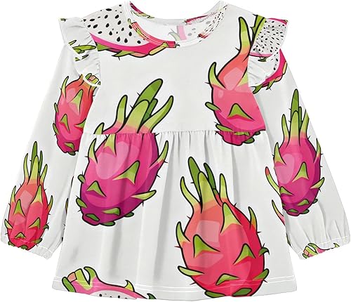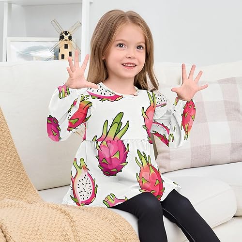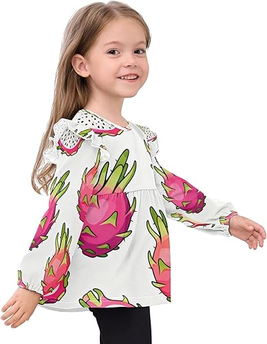 Toddler Girl Long Sleeve Shirt Ruffle Kids Blouse Tops Tee Shirt 18M-5T(Dragon Fruit,18 Months)