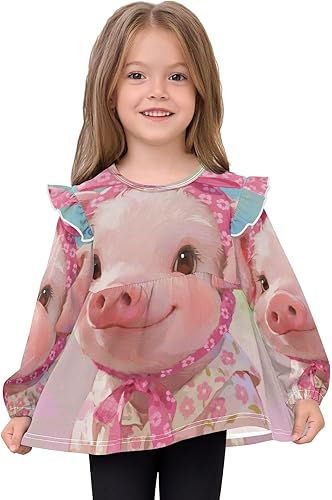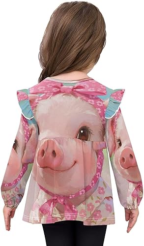 Toddler Girl Long Sleeve Shirt Ruffle Kids Blouse Tops Tee Shirt 18M-5T(Pig With Floral Dress,5T)