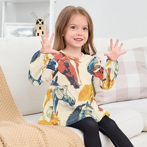 Toddler Girl Long Sleeve Shirt Ruffle Kids Blouse Tops Tee Shirt 18M-5T(Colorful Horse Heads,18 Months)