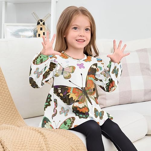 Toddler Girl Long Sleeve Shirt Ruffle Kids Blouse Tops Tee Shirt 18M-5T(Colorful Butterflies,2T)