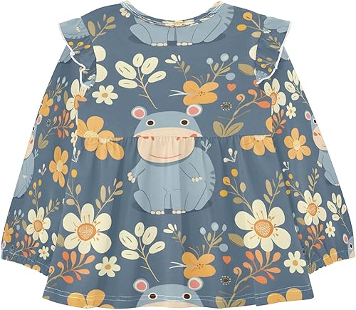 Toddler Girl Long Sleeve Shirt Ruffle Kids Blouse Tops Tee Shirt 18M-5T(Cute Hippo Floral Pattern,2T)