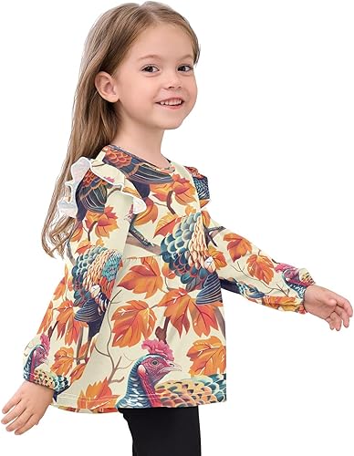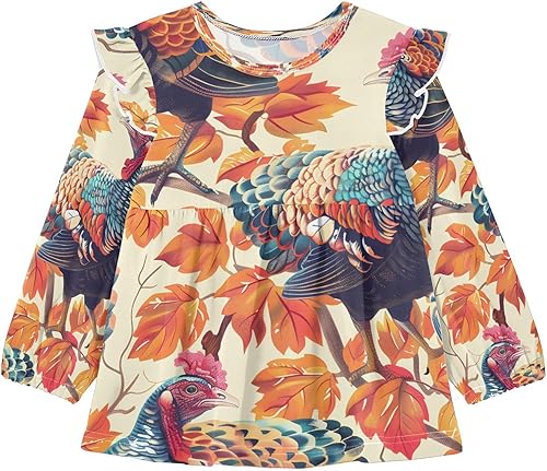 Toddler Girl Long Sleeve Shirt Ruffle Kids Blouse Tops Tee Shirt 18M-5T(Turkey Autumn Leaves Pattern,18 Months)