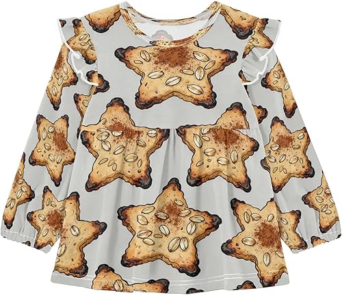 Toddler Girl Long Sleeve Shirt Ruffle Kids Blouse Tops Tee Shirt 18M-5T(Star Shaped Cookies Seeds,5T)
