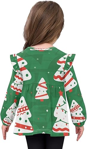 Toddler Girl Long Sleeve Shirt Ruffle Kids Blouse Tops Tee Shirt 18M-5T(Christmas Tree Green,4T)