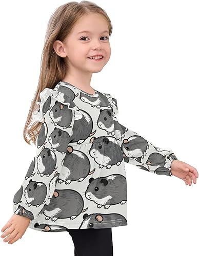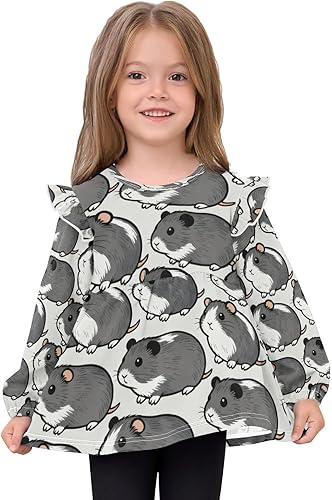 Toddler Girl Long Sleeve Shirt Ruffle Kids Blouse Tops Tee Shirt 18M-5T(Cute Gray Guinea Pigs,2T)