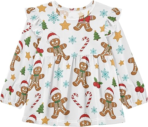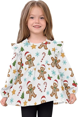 Toddler Girl Long Sleeve Shirt Ruffle Kids Blouse Tops Tee Shirt 18M-5T(Gingerbread Man Christmas,18 Months)