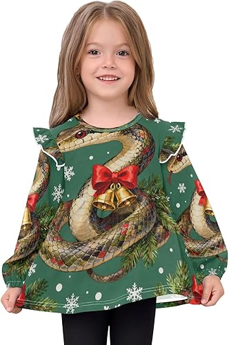 Toddler Girl Long Sleeve Shirt Ruffle Kids Blouse Tops Tee Shirt 18M-5T(Snake Bells Pine Branches,4T)