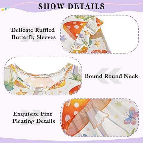 Toddler Girl Long Sleeve Shirt Ruffle Kids Blouse Tops Tee Shirt 18M-5T(Mushroom Stars Flowers Butterflies Leaves,3T)