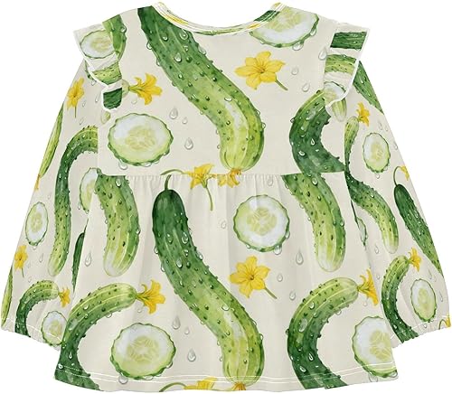 Toddler Girl Long Sleeve Shirt Ruffle Kids Blouse Tops Tee Shirt 18M-5T(Cucumber Slice Flower Water,18 Months)
