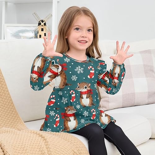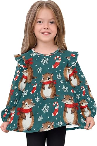 Toddler Girl Long Sleeve Shirt Ruffle Kids Blouse Tops Tee Shirt 18M-5T(Christmas Mice Scarves Candy Canes,18 Months)