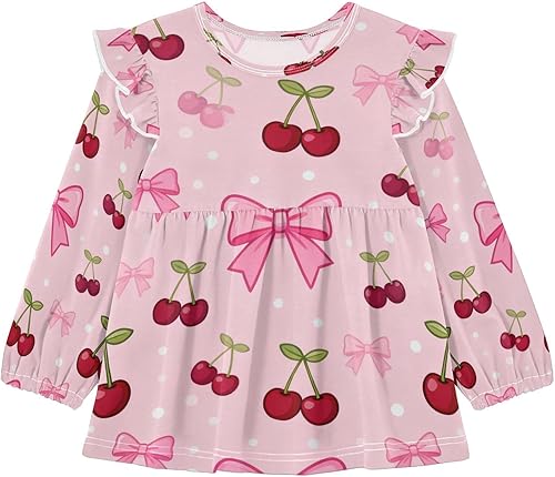 Toddler Girl Long Sleeve Shirt Ruffle Kids Blouse Tops Tee Shirt 18M-5T(Bows Cherries Polka Dots,4T)