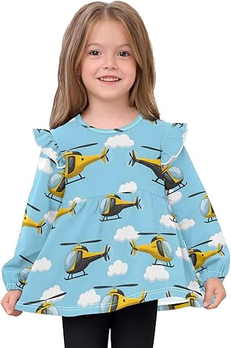 Toddler Girl Long Sleeve Shirt Ruffle Kids Blouse Tops Tee Shirt 18M-5T(Yellow Helicopters Clouds,4T)