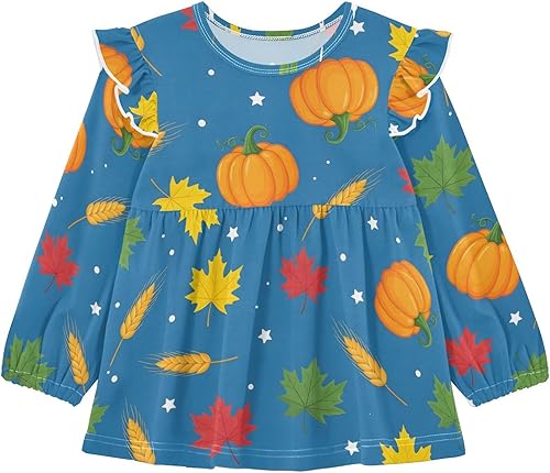Toddler Girl Long Sleeve Shirt Ruffle Kids Blouse Tops Tee Shirt 18M-5T(Pumpkin Leaf Wheat Star Autumn,18 Months)