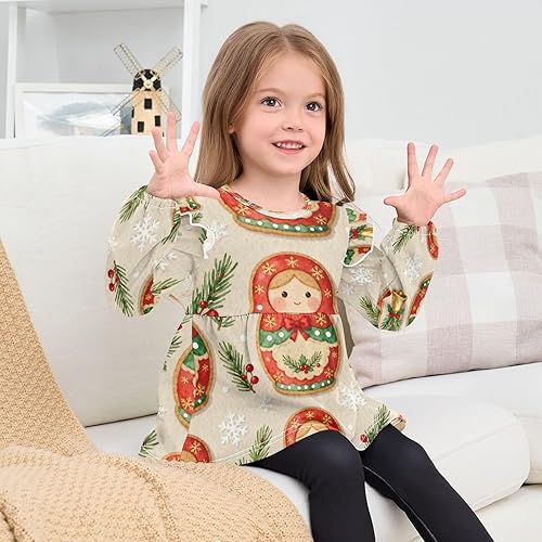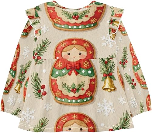 Toddler Girl Long Sleeve Shirt Ruffle Kids Blouse Tops Tee Shirt 18M-5T(Christmas Matryoshka Snowflakes Bells,2T)