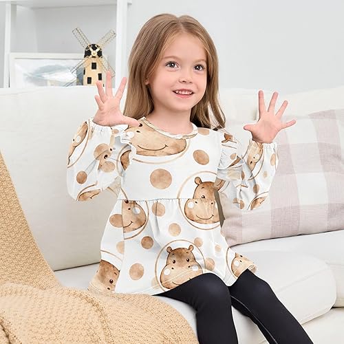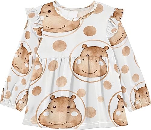 Toddler Girl Long Sleeve Shirt Ruffle Kids Blouse Tops Tee Shirt 18M-5T(Cute Hippo Faces Polka Dots,18 Months)