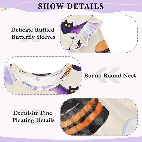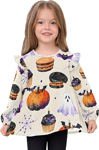 Toddler Girl Long Sleeve Shirt Ruffle Kids Blouse Tops Tee Shirt 18M-5T(Halloween Pumpkins Ghosts Bats Cupcakes,3T)